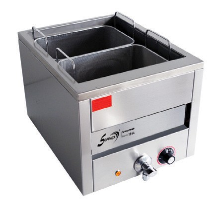 Cuiseur à pâtes + 2 paniers large - Cuve de 27 litres - 21202 + PAN02 • Capacité cuve : 27 litres • Paniers : 2 bacs 1/2 • Alimentation : 230V • Puissance : 3600 W • Dimensions (L X P X H) : 350 x 500 x 300 mm Cuiseurs à pâtes 355 1,706.40 Sofraca out_of_stock